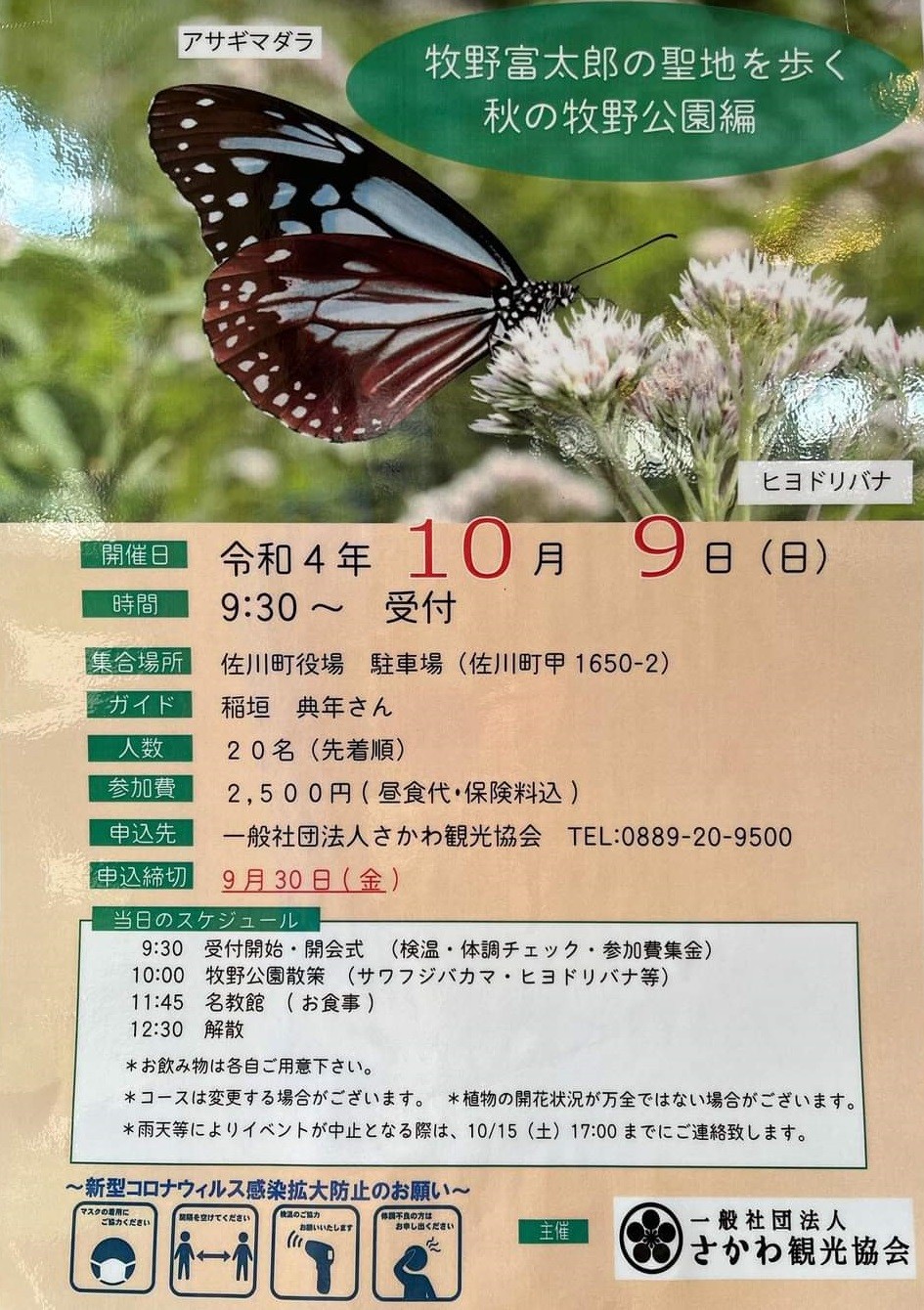 飛来していればアサギマダラの観察を