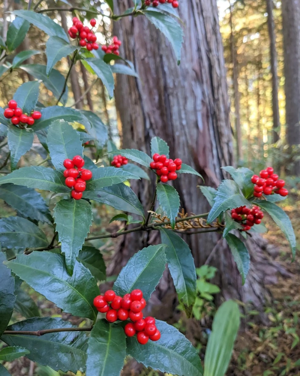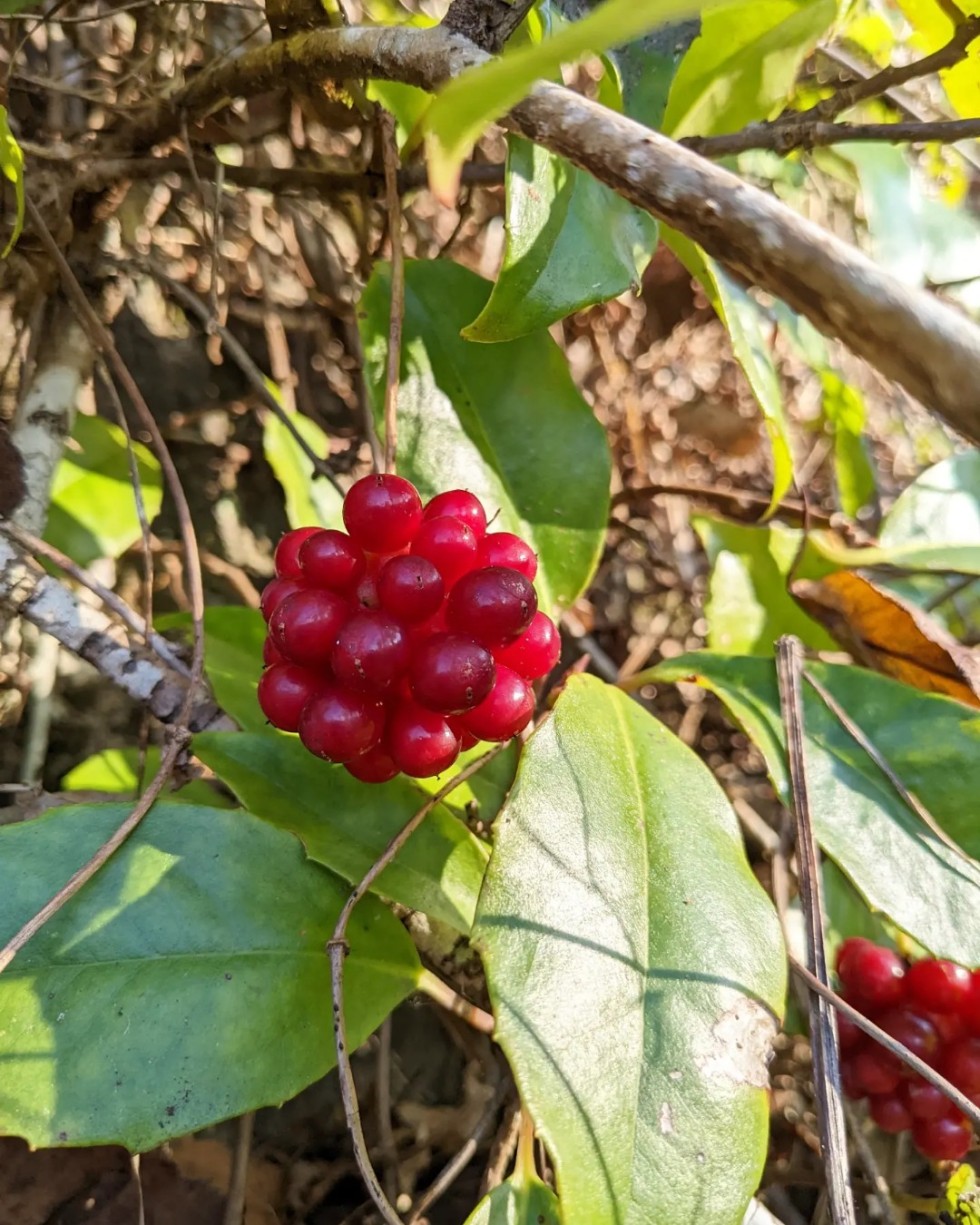 赤い実のサネカズラやセンリョウもまんまる可愛くて目を引きます!