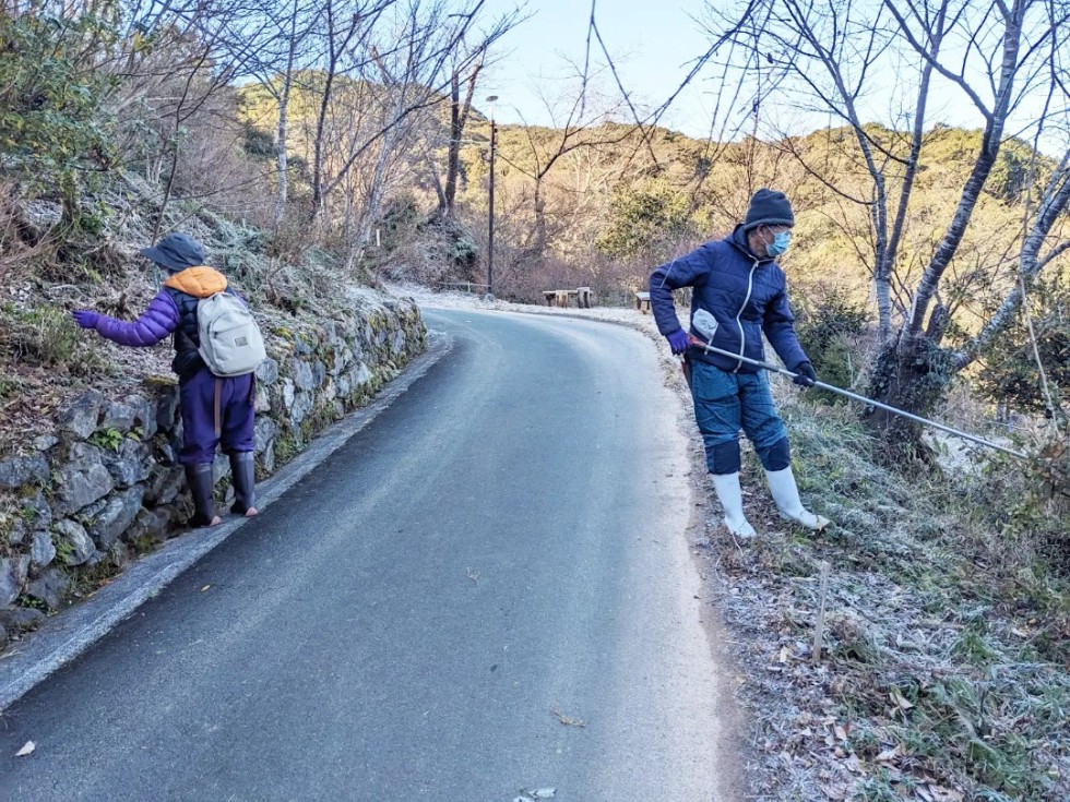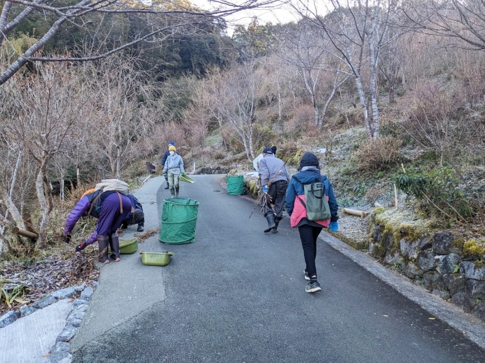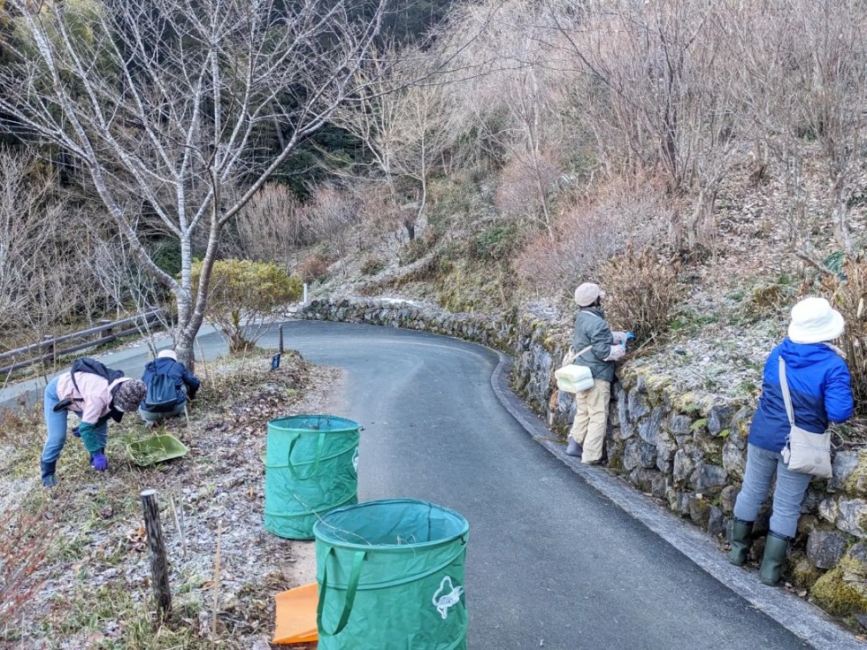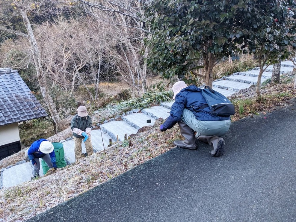 雪や霜が残る中、枯れた草花の除草や種の採取、お墓のお手入れなど、和気あいあいと作業をされていました。