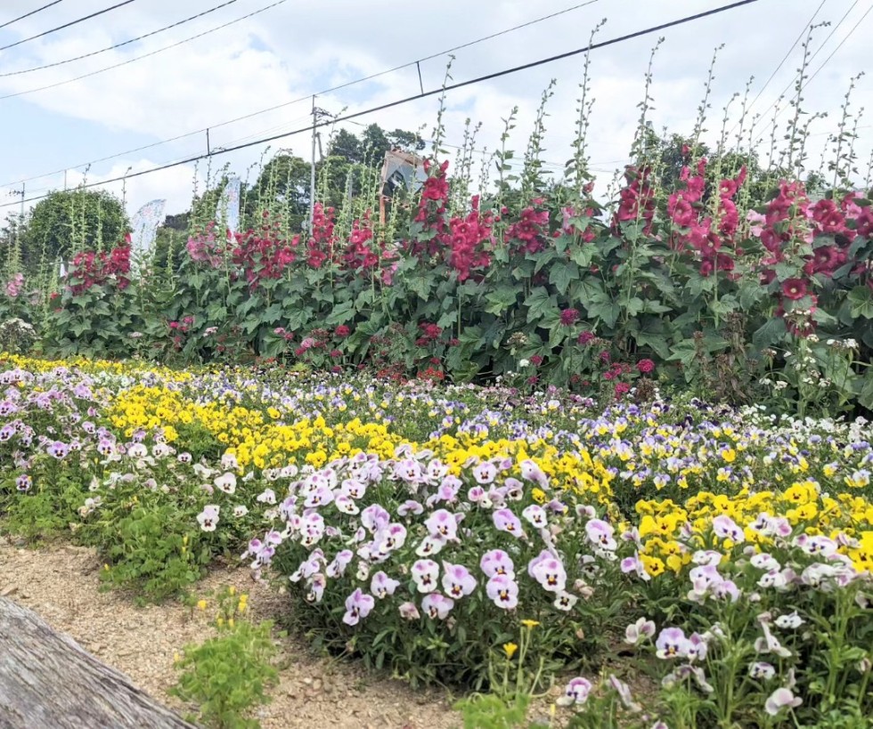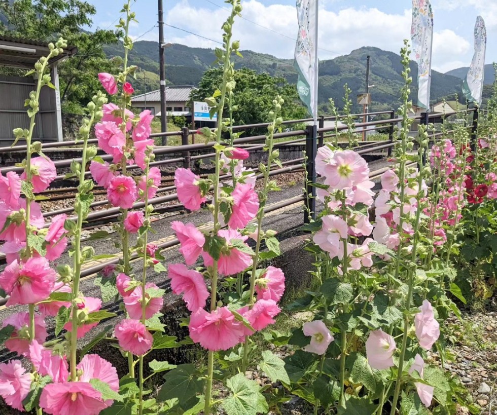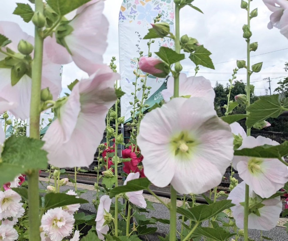 【斗賀野駅】タチアオイが見頃です♪
