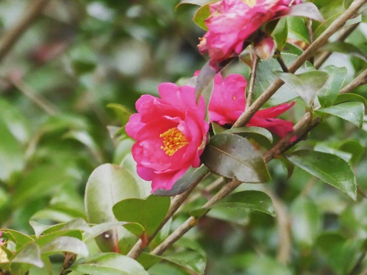 牧野公園にタチカンツバキ(サザンカの園芸種)が咲いています!